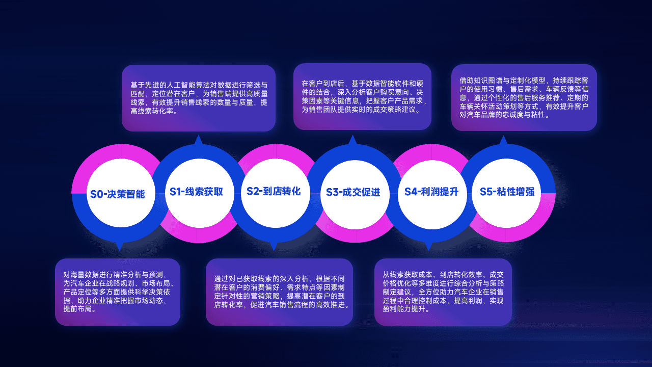通过拓宽潜在客户来源、、优化线索分配并提高到店转化率,,,,以增强销售效率。。。同时,,,利用线索数据不断优化分析模型,,,有效提升转化率,,扩大营销影响力。。。。